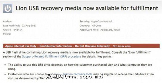 驱动器的官方价格为$ 69,但只要经过适当的眨眼和点头,便可以免费获得一个驱动器,前提是泄露的备忘录中包含AppleCare关于此主题的最终想法。 Lion内置恢复工具的失败是关键。如果这些人不能解决问题,则2级客户服务将可以根据代表的意愿发行免费的USB驱动器。换句话说-很好。