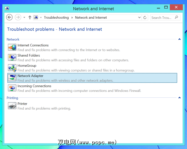 要运行疑难解答,请按Windows键+ X并选择“控制面板",打开桌面“控制面板"。单击“网络和Internet"下的“查看网络状态和任务",然后单击“疑难解答"链接。尝试同时使用网络适配器和Internet连接疑难解答。