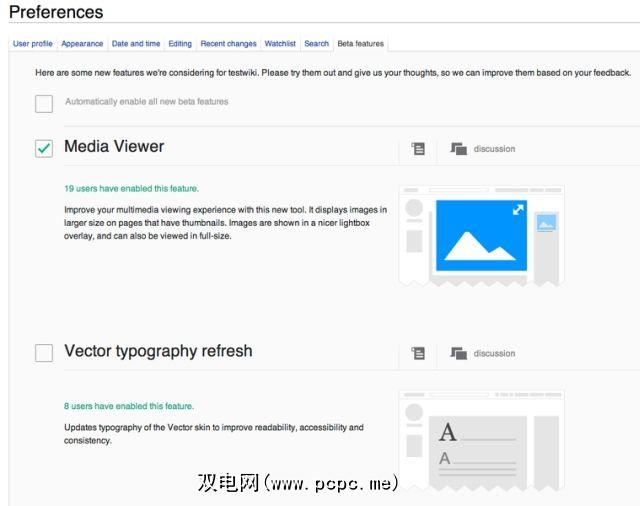 即可加入Wikimedia上的功能。可供测试的前四个Beta功能包括: