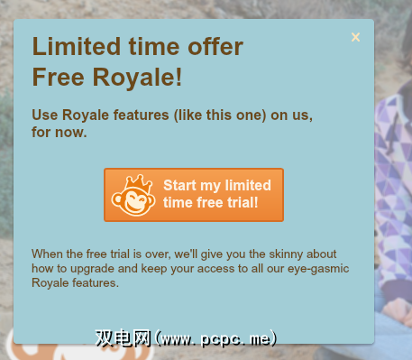 请注意,这里没有提及价格,我在网站上的任何地方都找不到这样的提及。您可以开始免费试用并取消您的修改,但是尚不清楚该试用将持续多长时间,如果您选择注册Royale功能,则需要支付多少费用。不过,与此同时,您可以免费使用所有功能,即使您的试用期最终用完,至少有一半功能不是Royale功能,而且将永远免费,这本身就使PicMonkey很棒。