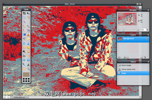 优点:非常友好,无需注册,数量众多的工具,也可以创建拼贴。