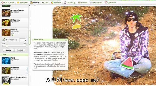 Pixlr对您来说太认真了吗? Ribbet正好相反。 Ribbet围绕所有人的照片编辑理念而建立,它是一个免费的在线照片编辑器,非常有趣。您可以使用Ribbet从计算机上编辑单张照片,或以各种布局创建拼贴。关于Ribbet的立即突出的事情是,它并没有太当真-编辑照片几乎就像是玩游戏。 Ribbet带有诸如裁剪,调整大小和旋转之类的基本工具,并可以用于效果,文本层,贴纸,修饰和框架。还有一个“高级"标签,其中提供了更多高级选项,例如克隆,曲线和级别。