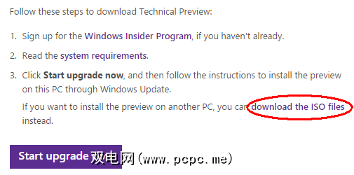 由于无法从Linux升级到Windows 10,因此需要下载ISO文件。确保下载与硬件匹配的Windows版本,因为32位Windows 10 TP不能在64位硬件上运行。