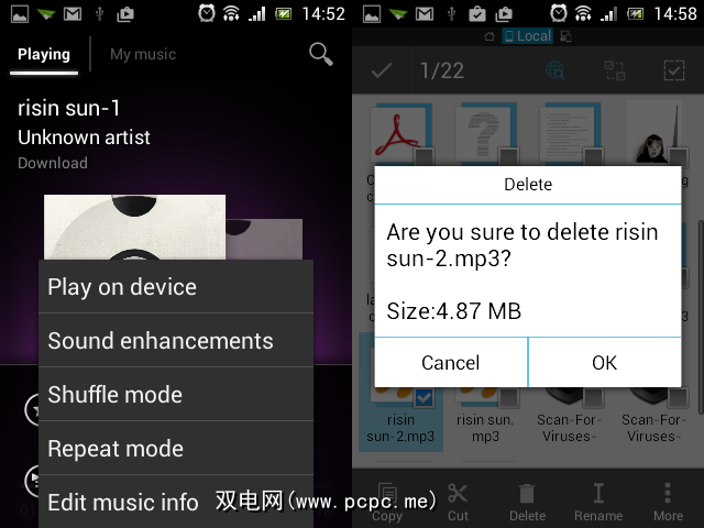 相比之下,我的自定义ROM(我使用的是OmniROM)安装了两个MP3播放器,都可以删除MP3。它还具有一个文件管理器。那么,为什么Sony Xperia E不能更轻松地删除文件呢?