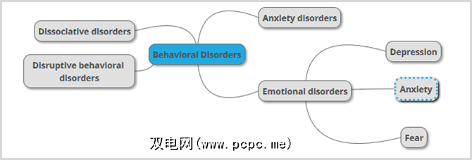 例如,针对心理学类的项目,其中心关键字为行为障碍的项目可能始于如下的思维导图: