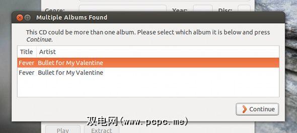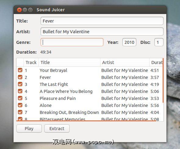 该应用程序使用服务来识别哪些CD您插入了光盘,如果不确定,它可能会在几张不同的光盘之间询问您。否则,您就很不错了!您可以选择一个曲目,然后单击“ Play "(如果要再次收听以确保它是您想的那样),或者继续并选择所有要翻录的曲目,然后单击在“ 提取"上。