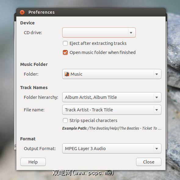 Sound Juicer [不再可用]是一个Linux应用程序,您可以执行此操作。除了有趣的名称外,它还非常易于使用,使翻录CD成为一项快速任务。该应用程序是使用GTK框架编写的,因此对于Gnome桌面环境以及使用GTK的任何其他桌面环境(例如Xfce)的用户来说,安装都很容易。