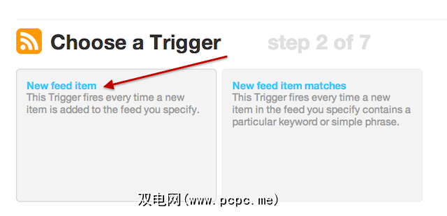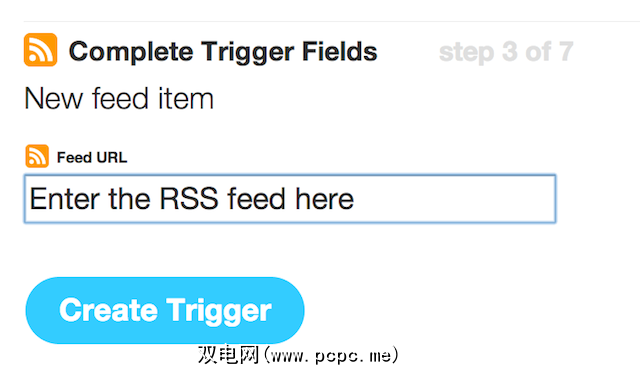 然后,您将有机会输入要添加到Evernote的站点的RSS提要,然后单击创建触发器。