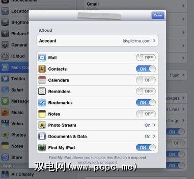 由于您可能不将旧的iPad用于日常用途,因此您可能还考虑关闭应用程序并您将不会使用的服务。例如,在 Settings> iCloud 中,我禁用了邮件,日历,便笺和提醒。