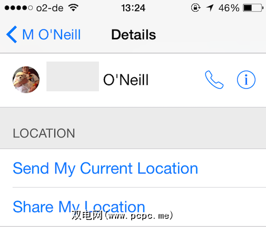 这仅适用于iMessage协议,因此其他人将需要iPhone,iPad或Mac电脑。他们可以在对话中的 Details (详细信息)按钮下查看您的位置。