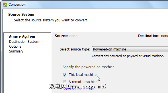 选择开机计算机作为源,并选择此本地计算机作为要转换的计算机。