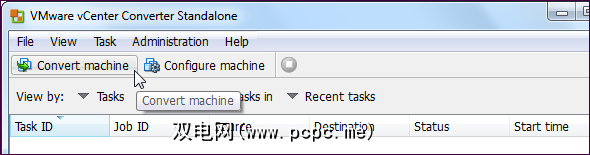 安装VMware vCenter Converter之后,单击其工具栏上的``转换机器''按钮即可开始使用。