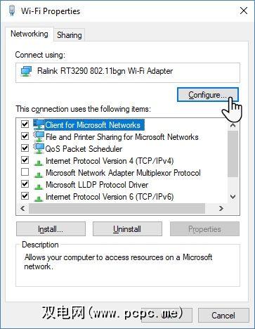 请注意,“ “有线连接"条目是无线网络适配器的属性,如果适配器不支持,则可能不存在。例如,我的Ralink RT3290适配器没有。