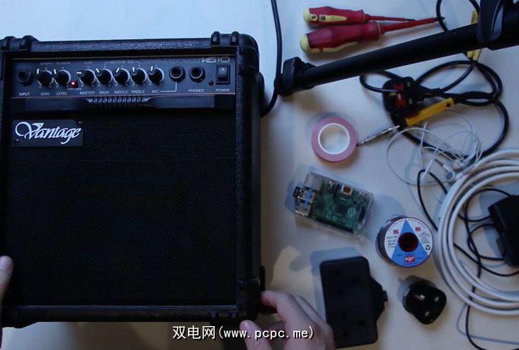 您还需要一个旧的扬声器。我使用Vantage吉他扬声器和我周围的内置放大器。您可以花大约50美元购买类似的型号,但任何老式扬声器都可以使用。 Raspberry Pi的声音输出效果不佳,因此,如果扬声器没有像我的那样内置放大器,则需要在Pi上添加一个。我喜欢HiFiBerry的这个,尽管它还不支持B +。