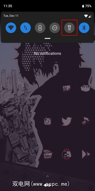 根据首先显示的图标,您还可以从通知栏访问 Flashlight 图标(将其拉下一次)。