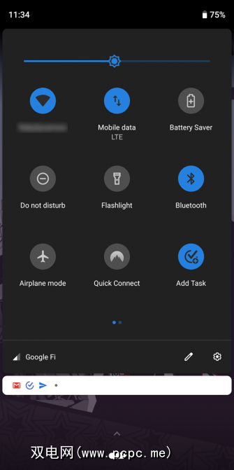 要打开手电筒,只需从屏幕顶部向下拉两次(或用两根手指拉一次)以打开“快速设置"菜单。您应该看到一个手电筒条目。点击该按钮可立即打开LED闪光灯。
