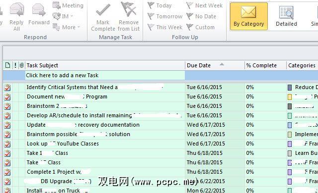 “ Outlook任务"页面中的所有任务通常都属于一个或另一个项目。不幸的是,在Microsoft Outlook中,按项目直观地组织这些任务并不容易。它们都只是出现在一个很大的清单中。有可以使用的类别,但这只是一列。