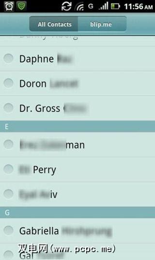 您现在可以浏览手机的联系人,然后选择要向其发送语音消息的人。您可以将消息发送给一个人或一组人。简单浏览并点按您选择的联系人。