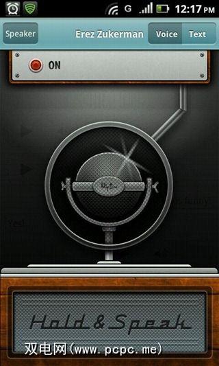 如果您的朋友确实已安装该应用程序,则您现在可以与您的内心进行语音和文字聊天。使用右上角的按钮在语音和文本之间切换。您也可以打开和关闭扬声器。当扬声器关闭时,您可以将手机放在耳边听语音消息。如果您在公车上或不希望其他人听到您的消息的任何其他地方,这很有用。