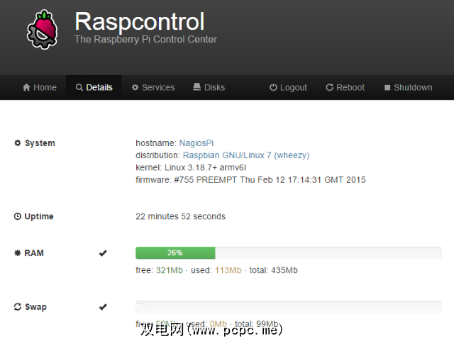 RaspControl使您可以很好地了解可以从Pi和其他设备获取哪些信息,尽管远程Linux硬件将需要NRPE(Nagios远程插件执行器) )分别安装在它们上,以便NagiosPi可以与它们通信。