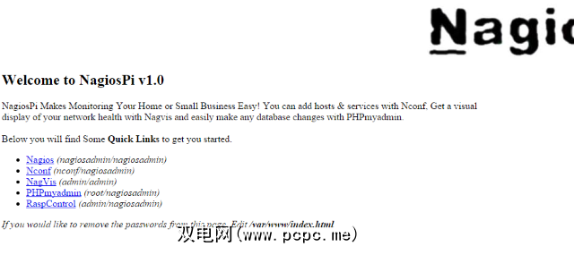 您的浏览器应显示NagiosPi控制台,并在左上角显示链接集角落: