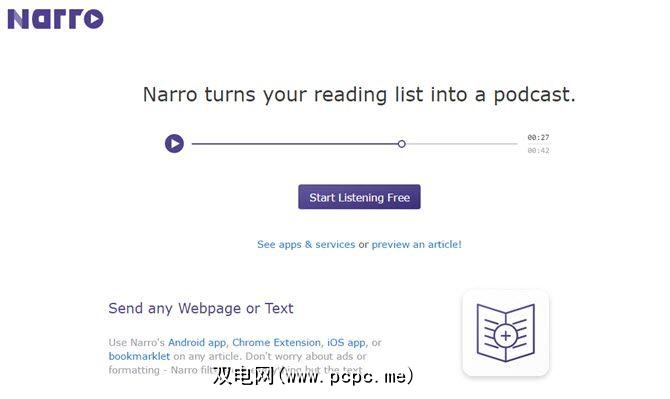 Narro是Android应用程序,iOS应用程序,Chrome扩展程序和小书签。 >它会自动将任何文章变成播客,您可以在任何设备和播客播放器中收听。它还与Pocket和Instapaper等其他一些应用程序集成。