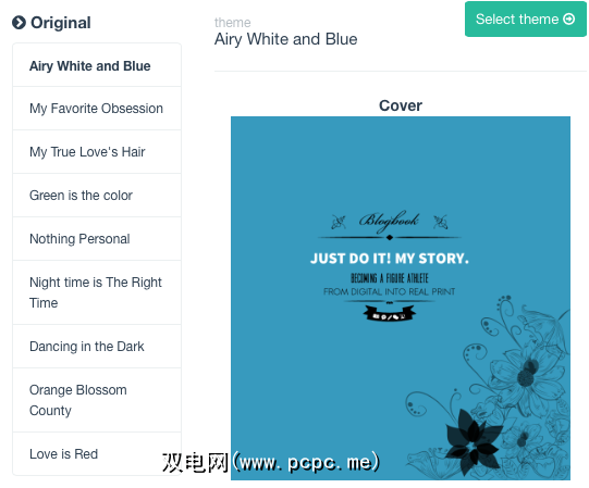 Booklrs组装完书后,您可以准确预览书的外观,然后将项目保存到工作站。在选择最终出版格式之前,我以几种不同的主题预览了我的书。