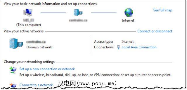 单击您的开始菜单,然后单击控制面板,然后单击网络和共享中心。您将看到以下窗口: