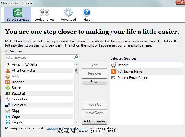 使用Shareaholic [不再可用],您可以将更新发布到各种社交网络和网站。从多个选项中进行选择,包括Twitter,Facebook,Reddit和Hacker News。扩展程序图标显示在地址栏中,它使单击按钮即可轻松共享任何网页。
