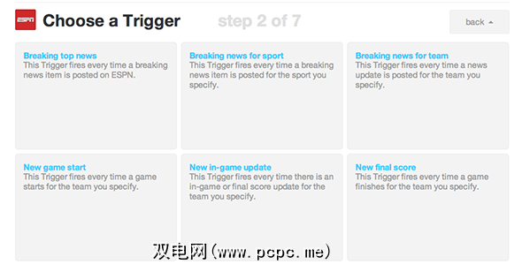 不过,我们还是将重点放在ESPN上。该通道只能用作“触发",即,导致动作发生的事件。创建一个新配方,您将看到标准的ifttt公式: