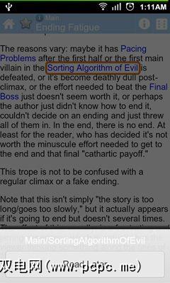 由于DroidTropes是专门为TvTropes网站设计的,因此会格式化所有内容,使其适合设备。另外,当您单击链接时,可以选择将页面添加到“阅读"列表中。