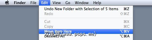 复制文件后,转到Finder的编辑菜单并按住Option(alt)键。您会注意到,“粘贴项目"按钮变为“在此处移动项目"。与其他操作系统上的剪切和粘贴功能类似,这将移动复制的文件,而不是复制文件。要即时使用此选项,可以使用Command-C和Option-Command-V键盘快捷键分别复制和移动文件。