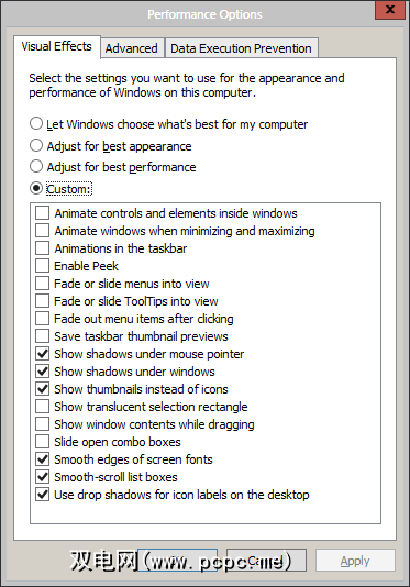 这些全由您决定。如果您不关心视觉效果,只需让Windows调整选项以获得最佳性能即可。您也可以手动取消选中所有内容。效果也一样。取消选中这些选项可显示在低端计算机上的性能提高。不过,对我而言,这完全是保留经典外观。