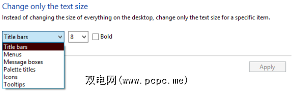 这都是个人喜好,但我认为,如果将它们拉低一两个,一切看起来都会更好。播放文字大小,看看自己喜欢什么。只是为了显示它有什么明显的区别,这是一个尺寸为8的标题栏: