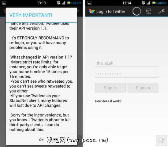 由于Twidere并未尝试向您出售任何东西(如果您愿意,您无法为该应用付费),因此它有能力在很多事情发生之前就非常先行。首次安装该应用程序时,您会从开发人员那里得到一条直截了当的消息,列明了您可以期望的结果以及它的错误: