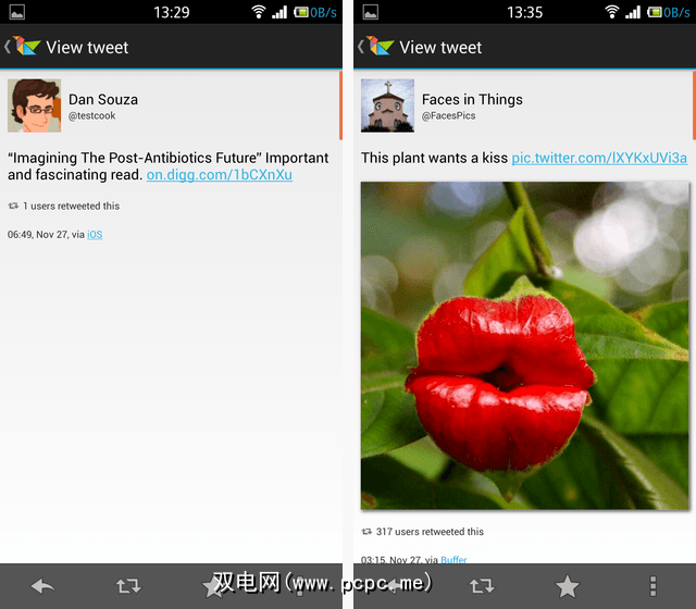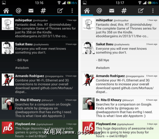 与Tweetings一样,Twidere具有暗色和亮色主题:<