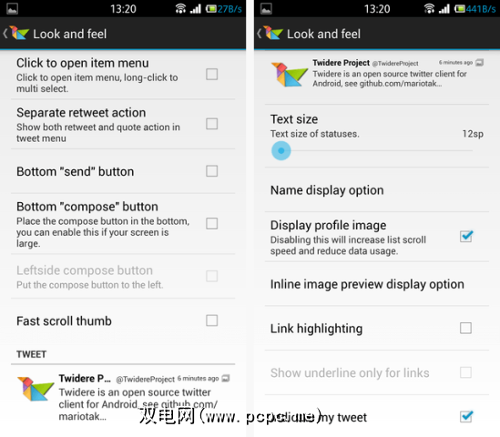 如果您查看过Tweetings评论,就会发现Twidere为您提供的丰富设置不会感到惊讶。这是Twidere实际上比Tweeting更好的几个领域之一: