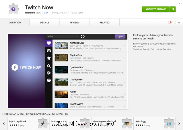 Twitch Now是Chrome网上应用店中的五星级扩展程序,共有近50,000个用户。我已经使用了几个月,它使我免于将Twitch目录作为永久固定选项卡。