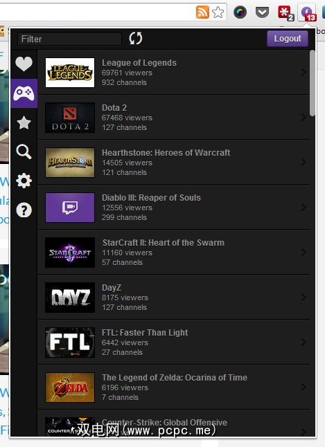 上面显示的是我登录后Twitch Now扩展的默认窗格显示的内容。与其他扩展可能需要您分别跟踪该扩展本身的流不同,Twitch Now与您的Twitch帐户一起工作,以便可以保持同步。该图标也会更改,以显示您可以观看多少您喜欢的彩带,因此您不会错过任何内容。