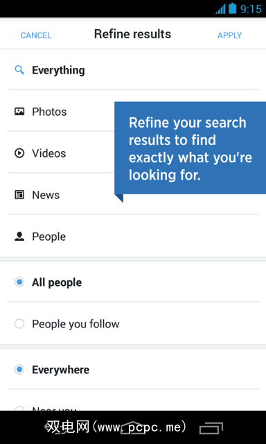最后,用户可以从他们关注的人那里搜索推文,就像进行标签和关键字搜索一样。