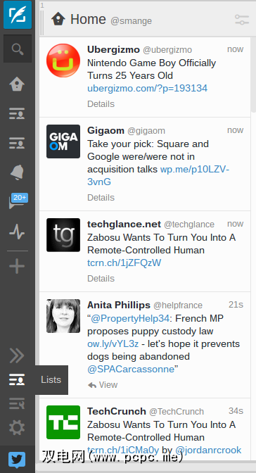 在左下角的下方,您会看到一个列表图标。单击该按钮以打开列表窗口。现在,找到您的列表或从此处创建一个新列表。请注意,这将更改您的实际Twitter列表,而不仅仅是TweetDeck中的列表。