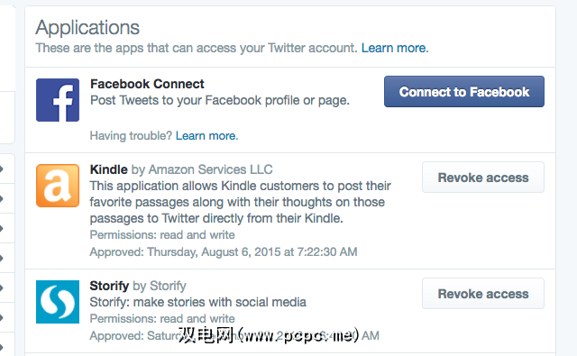 转到Twitter.com/Settings/Applications,登录并单击“撤消访问权限"这对您来说不是必需的。实际上,您可以在所有应用程序上安全地执行此操作,甚至可以撤消所有主要网站上的权限。下次使用需要Twitter访问权限的应用程序时,请问一问您是否真的要授予它这么多的信任。