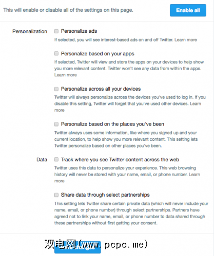 尽管Twitter通过这些更改赢得了隐私权主义者的批评,而且由于您自动选择了其中的大多数设置,因此您可以轻松禁用所有个性化设置和对数据的访问。