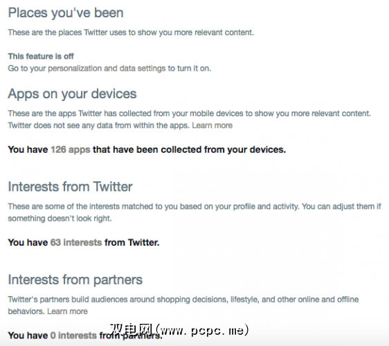 除了能够禁用所有这些设置外,Twitter还使操作变得简单一些让您查看广告商感兴趣的Twitter数据以及哪些广告商已将您包括在其中Twitter上的受众群体列表。