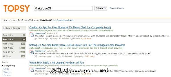 如果您使用Twitter进行社交媒体营销,则使用Topsy之类的网站可以提供宝贵的信息。 Topsy允许您根据某些类别过滤搜索结果。缩小结果范围以仅显示带有照片,链接或视频的推文。 Topsy还使您可以轻松地按时间缩小结果范围,仅显示过去1小时,过去4小时,过去一天,过去7天,过去30天以及所有时间的结果。
