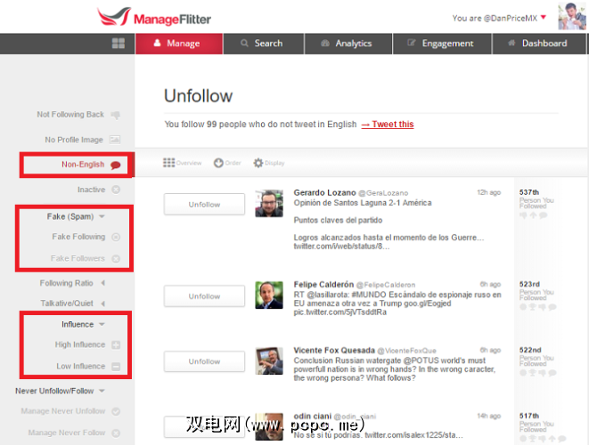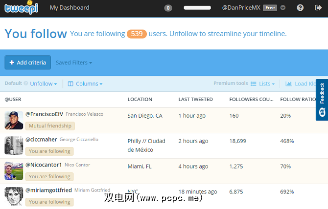 与朋友或关注一样,Tweepi提供了用于管理您所关注的人的工具。您可以找出谁没有关注您以及谁没有关注,然后进行相应的调整。