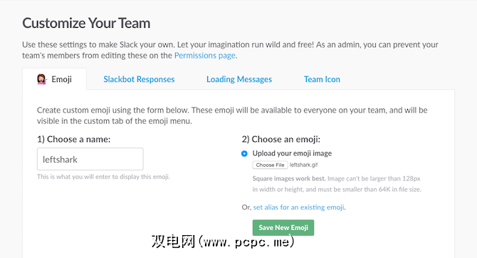 此处,点击选择文件以上传图片并为其命名(是它的捷径)。保存表情符号,一切就绪。如果安装了Chrome,则可以使用Slack Emoji Tools扩展程序批量上传表情符号(只需在上传前仔细检查名称即可,因为它们将成为快捷方式)。
