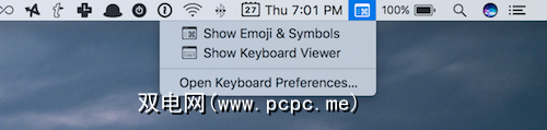 Emoji Pro提示:如果您不想(或不记得)键盘快捷键,启用表情符号查看器菜单栏按钮。转到系统偏好设置->键盘,并启用在菜单栏中显示键盘和表情符号。点击新添加的图标,选择显示表情符号和符号,您将看到熟悉的表情符号选择器。
