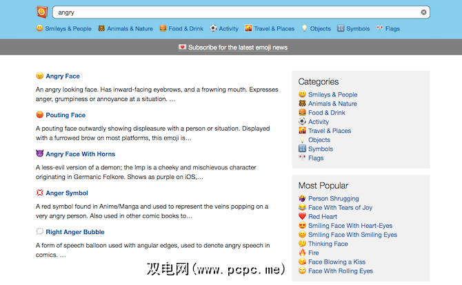 我最喜欢该网站的是搜索和分类功能。使用描述性搜索来查找我正在寻找(我不知道)的表情符号确实很容易。有时候,当我在写东西时,或者在对话过程中,在Emojipedia上搜索可以使我获得更好,更快的结果。