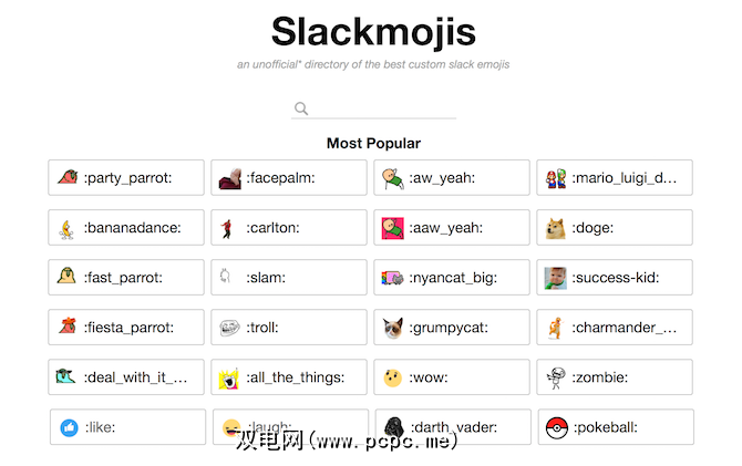 现在,在表情符号方面,您的整个Mac与Slack处于同一级别,是时候增强Slack表情符号游戏了。让我们向Slack添加自定义表情符号。已经有一个资料库,您可以在其中找到Slack兼容格式的新颖有趣的表情符号。转到Slackmojis,查找要添加的表情符号并将其下载到Mac。